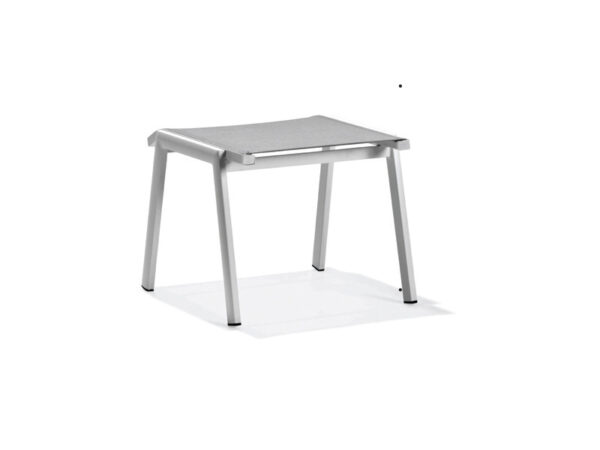 Banqueta auxiliar. Estructura de aluminio en color gris, tela textilene gris.