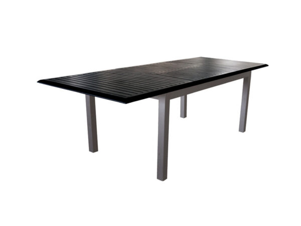 Estructura de aluminio en color aluminio y tapa de aluminio en color negro.