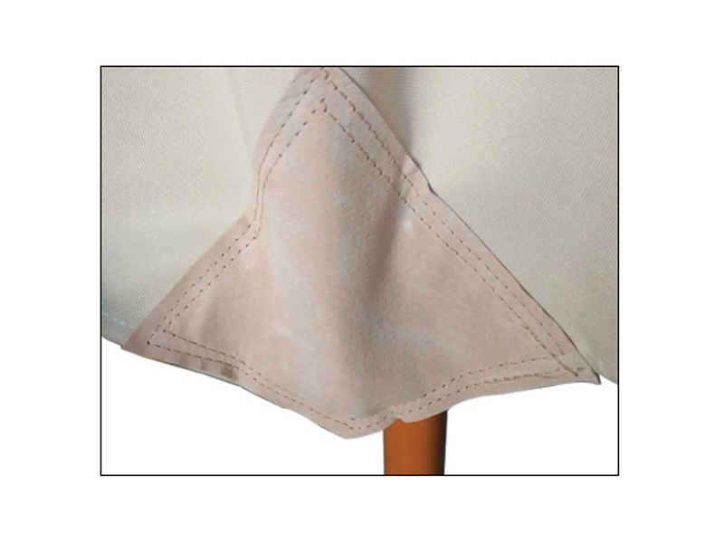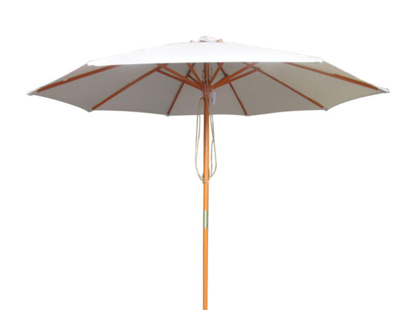 Tela natural de 180 g, palo central de madera de 48 mm.