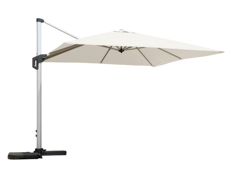 Estructura de aluminio anodizado, tela blanca de luxe de 240 g., 360 grados de rotación con pedal.