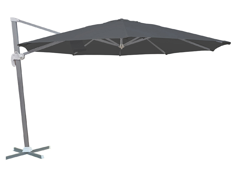Estructura de aluminio, color aluminio, tela negra de luxe de 240 g. 360 grados de rotación con pedal.