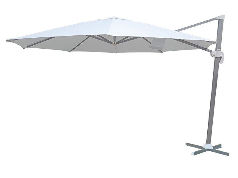Estructura de aluminio, color aluminio, tela blanca de luxe de 240 g. 360 grados de rotación con pedal.
