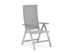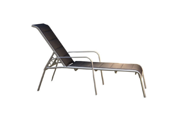 Estructura de aluminio en color aluminio, tela textilene negra acolchada.